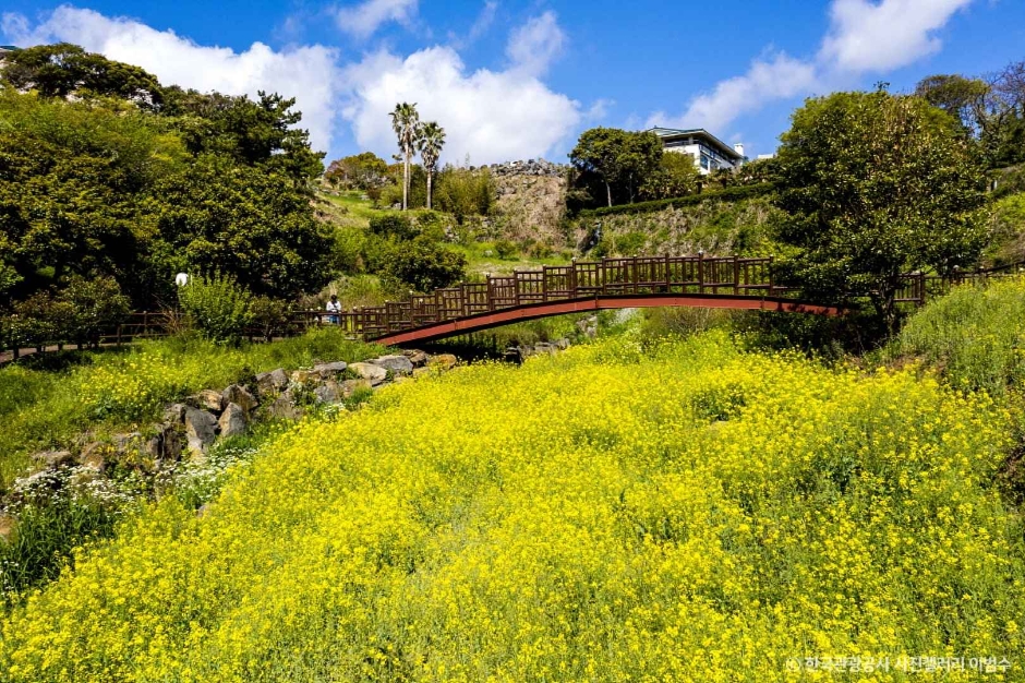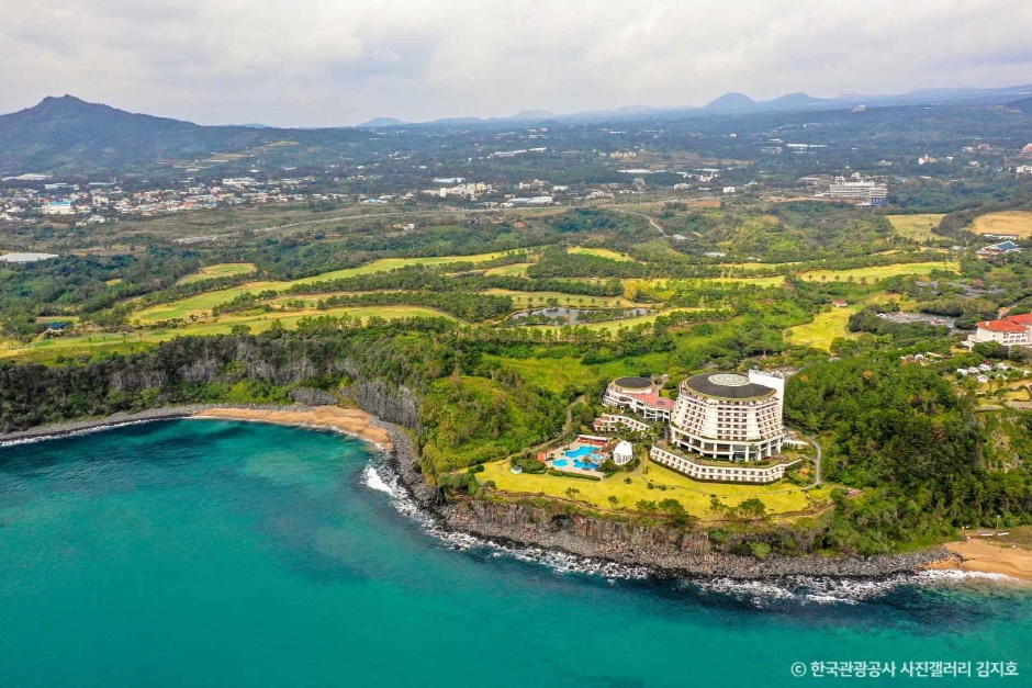 El Centro Turístico Jungmun es el complejo turístico diversificado más grande de Corea. Se sitúa en la costa del área Jungmun, Seogwipo. Sus instalaciones se funden bellamente con la naturaleza del entorno, y en 1978 fue designado Sitio de Turismo Internacional. Dentro del Complejo hay 9 hoteles excelentes tales como Hyatt, Shilla, Lotte, Sweet, Hana, Seaes, Kensington, Booyoung y Corea Condo. Asimismo, hay numerosos lugares interesantes para visitar, por ejemplo, ‘Pacific Land’, el jardín botánico Yeomiji, la Aldea de Pesca para los turistas, el puente Seonimgyo, la cascada Cheonjeyeon y la playa Jungmun. La costa del Centro Turístico Jungmun es especialmente bella, y con frecuencia es usada como lugar para filmaciones cinematográficas, de telenovelas y filmes comerciales. El banco del jardín del Hotel Shilla fue usado en la película Swiri y el área pasó a ser conocida como ‘la Colina de Swiri”. El jardín botánico Yeomiji es también un punto de atracción imperdible. Posee 2.000 especies de plantas raras dentro de un vivero, y 1.700 clases de flores y árboles al aire libre. Por allí pasa un tren turístico que puede abordar y ascender hasta la terraza alta que se encuentra en el centro del jardín. Desde allí, puede ver el arboreto entero y, si las condiciones climáticas son favorables, hasta llegará a avistar la isla Marado a la distancia.