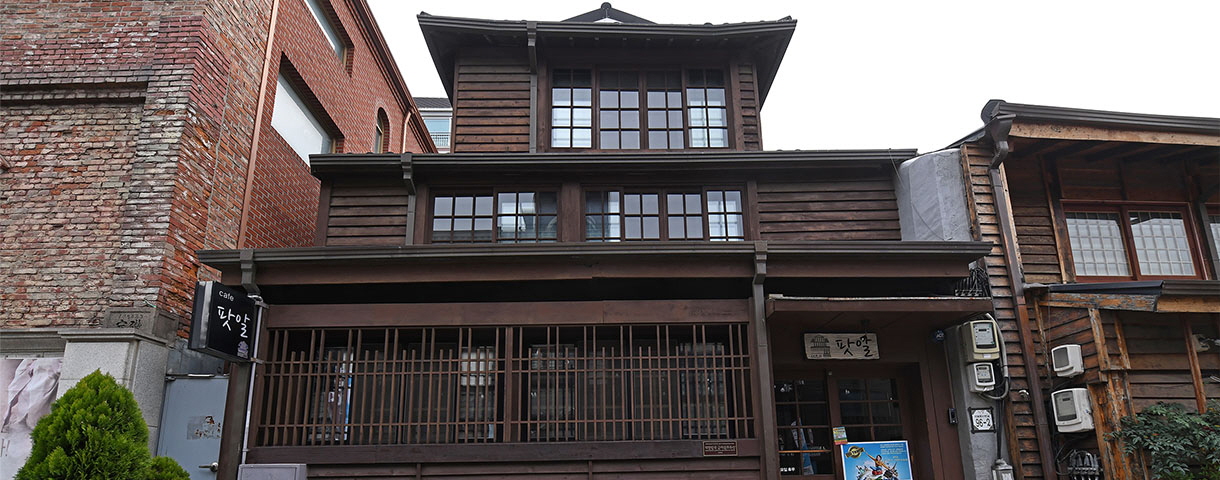 Una cafetería con pat-bingsu (postre de hielo raspado de judías rojas) en un edificio designado como propiedad cultural