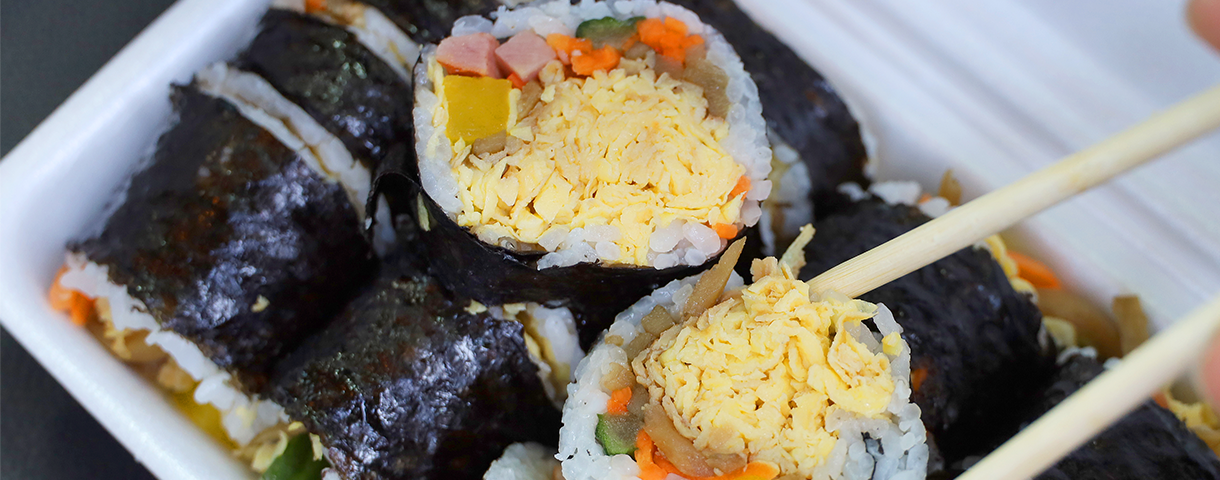 El gimbap al estilo de Gyeongju, con mucho huevo adentro